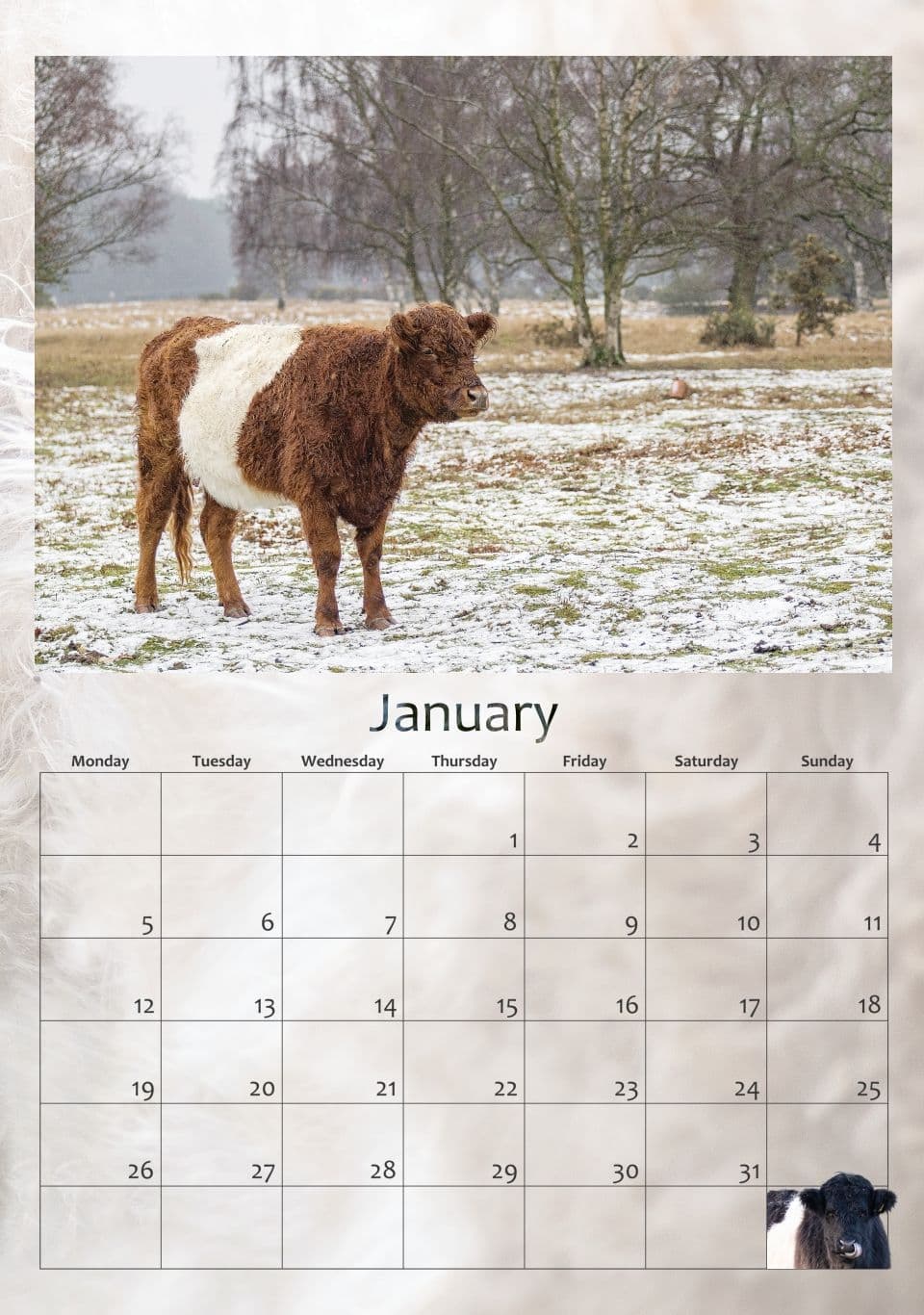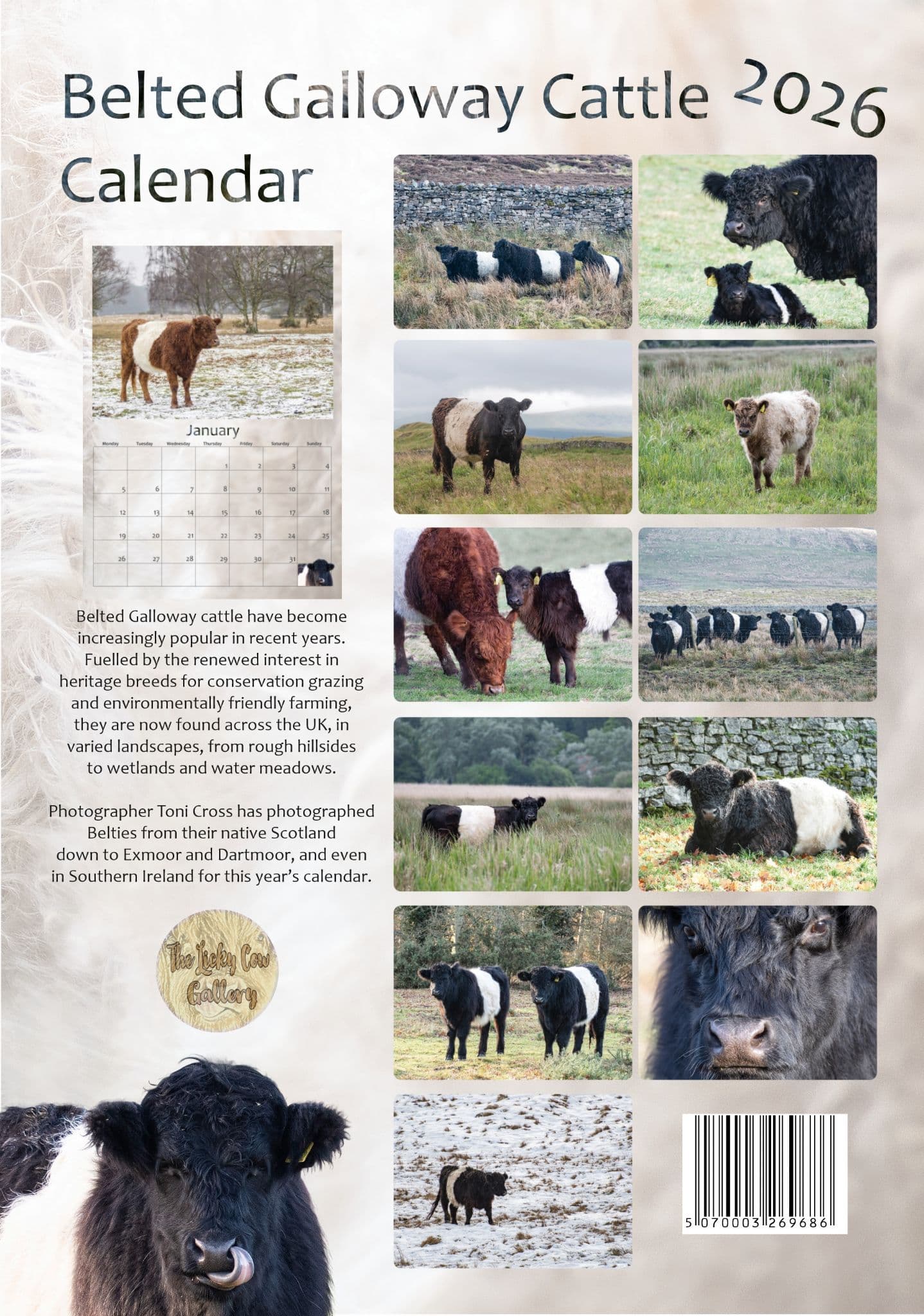 Belted Galloway Cattle Calendar 2026