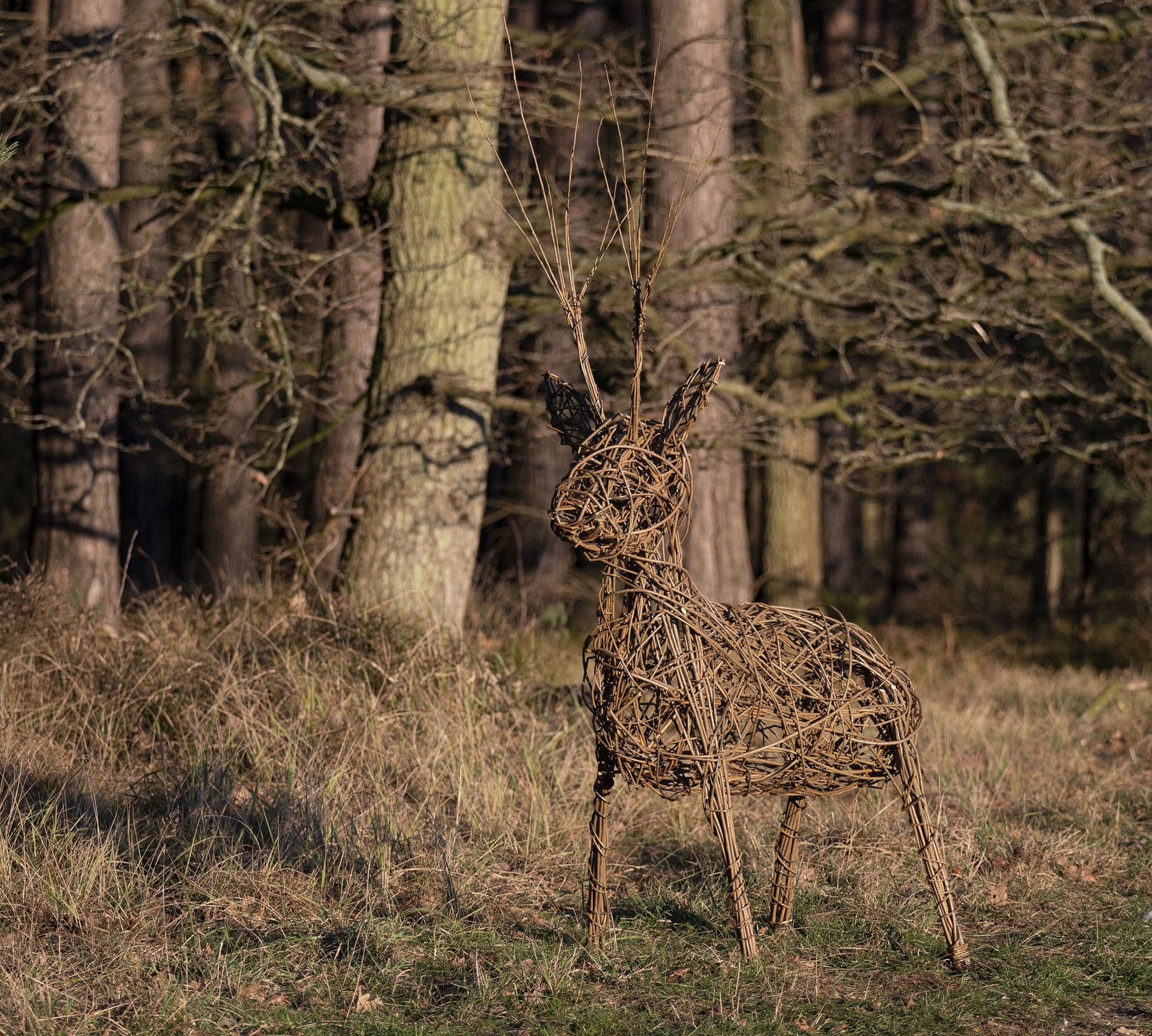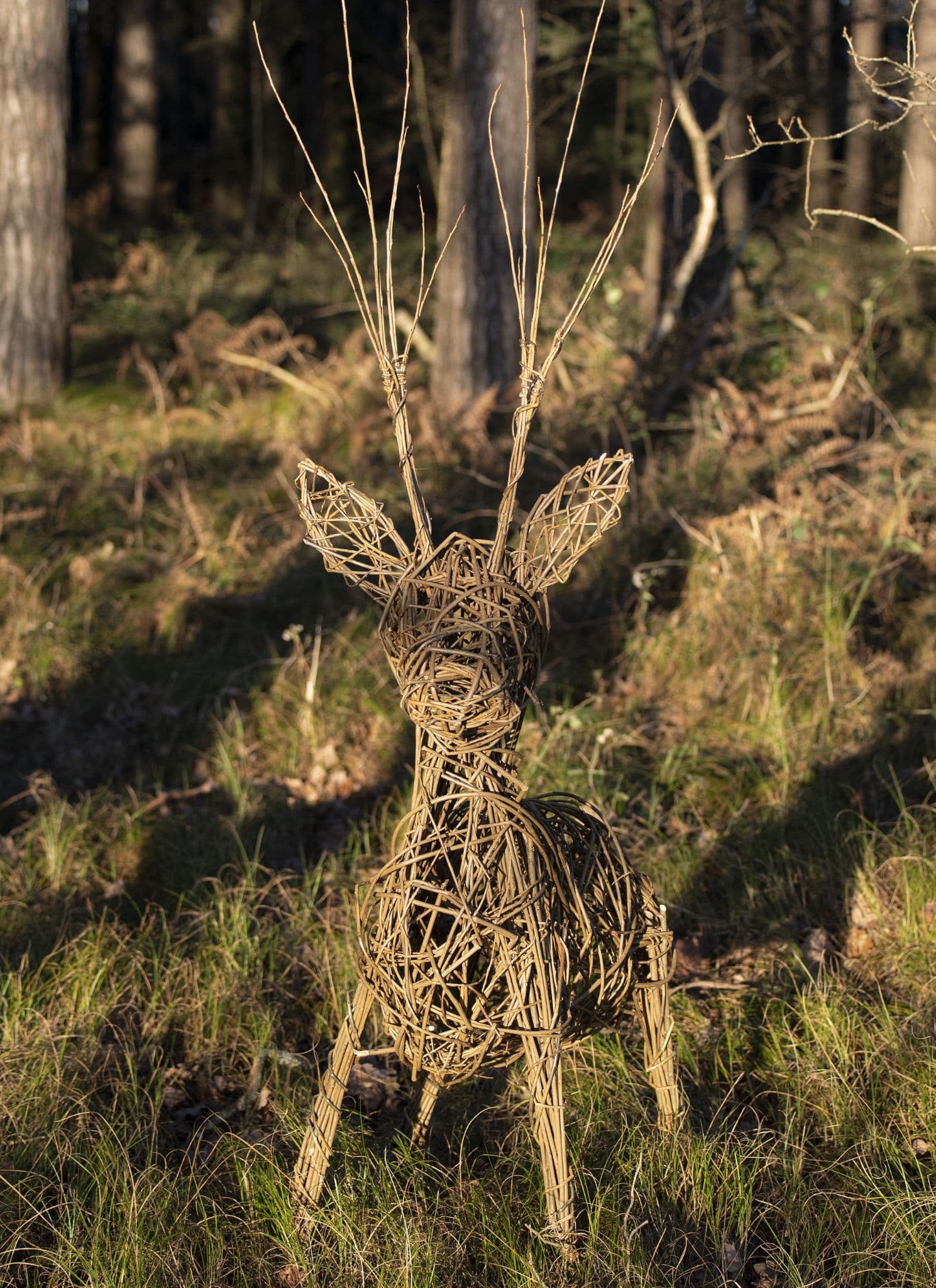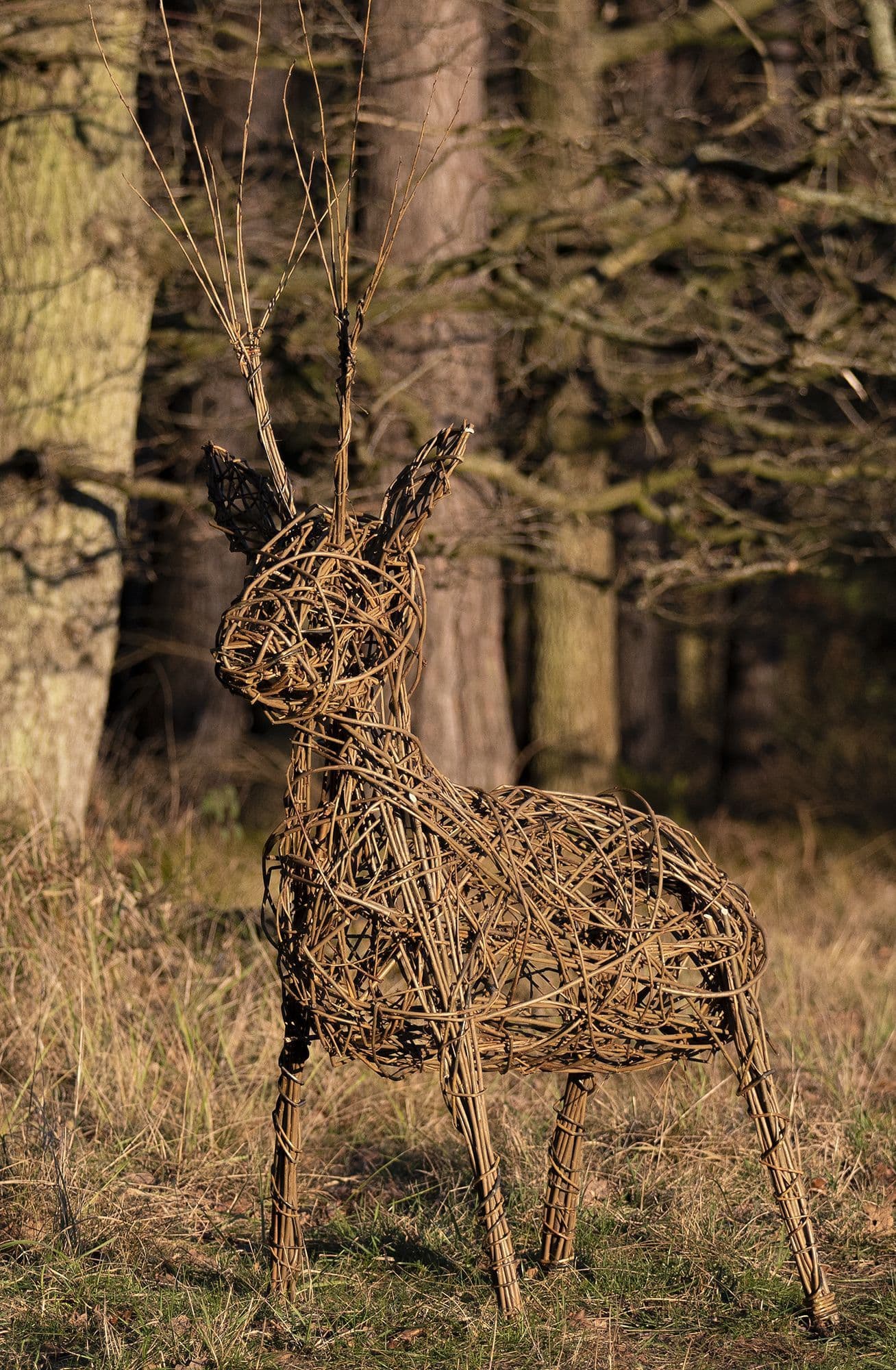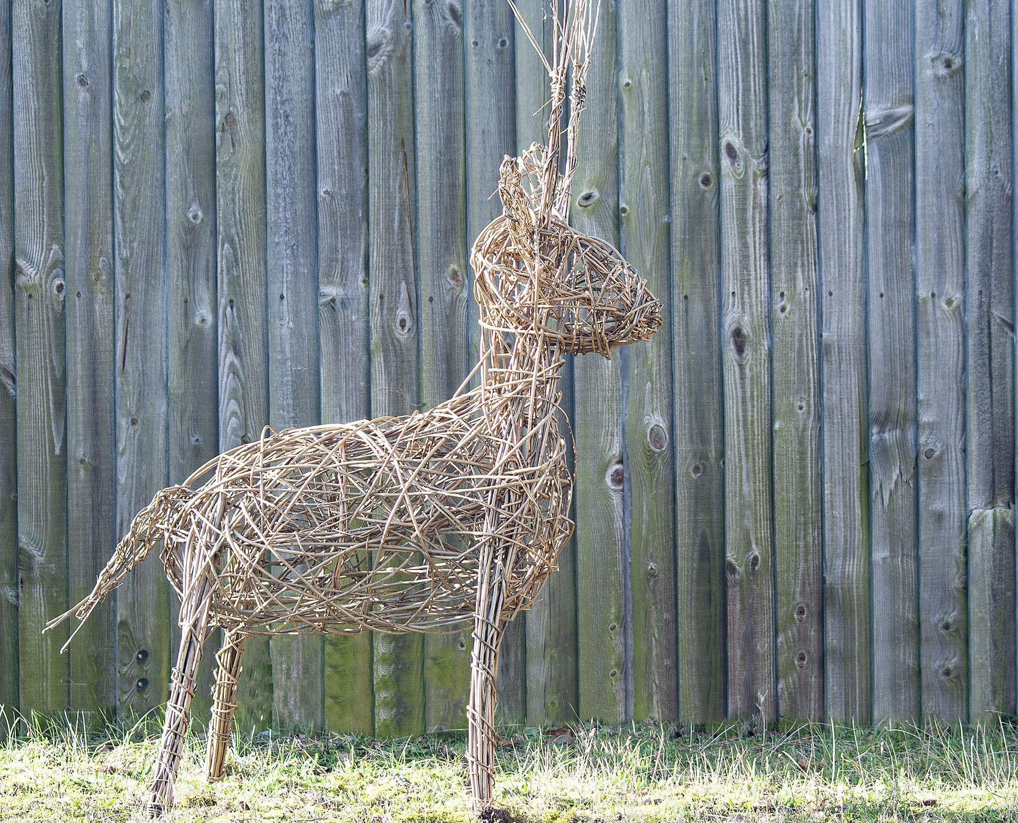 Stags are woven with brown willow which lasts well outside. We use a lot of longer and thicker willow for this sculpture. This is easy to work with but may take a bit of effort to weave. If you have limited mobility or problems with your hands, have a chat with Toni first to make sure this workshop is suitable. Sculptures can be varnished or painted with linseed oil to preserve them.